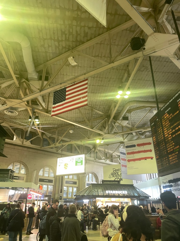 We gather in the center of the hanger-like cavity in a sea of eating establishments, staring forward at the station board tracking arrivals and departures. Holding vigil, eyes transfixed, time, route, ETA, track number… with the tick tock of the clock, the schedule changes slowly, delays and track changes noted.